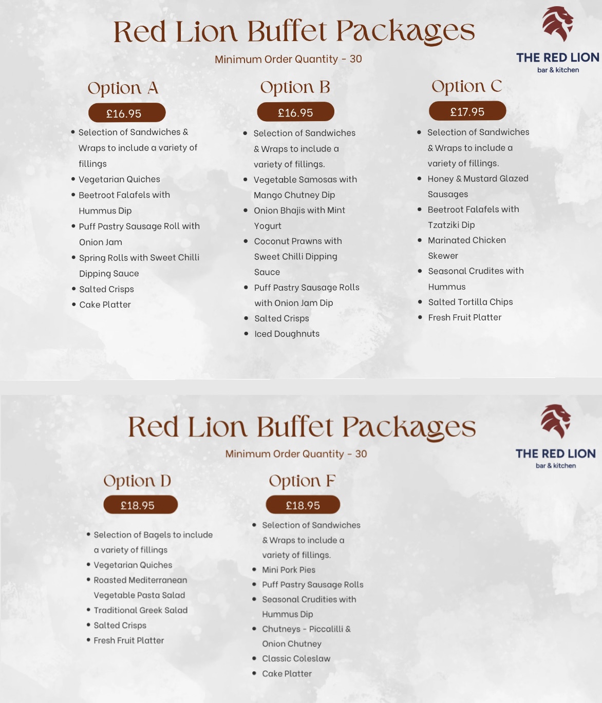 Here at the Red Lion we offer five different finger buffets perfect for private functions. Please see our buffet options on the link below.